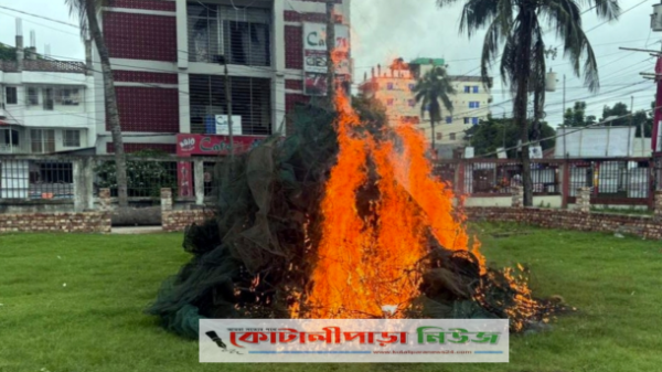 কোটালীপাড়া (গোপালগঞ্জ) প্রতিনিধি : দেশীয় প্রজাতীর মৎস্য সম্পদ রক্ষার্থে গোপালগঞ্জ জেলার কোটালীপাড়া উপজেলায় বিশেষ অভিযান পরিচালনা করে ৬ লক্ষ টাকার চায়না দুয়ারী জাল আটক করে পুড়িয়ে ফেলা হয়েছে। আজ বৃহস্পতিবার দুপুরে উপজেলা নির্বাহী অফিসার মোঃ মাসুম বিল্লাহ স্থানীয় ঘাঘর বাজারে বিশেষ অভিযান পরিচালনা করে দুলাল বেপারী ও বাবু খাঁর গোডাউন থেকে ৭৬ টি অবৈধ চায়না