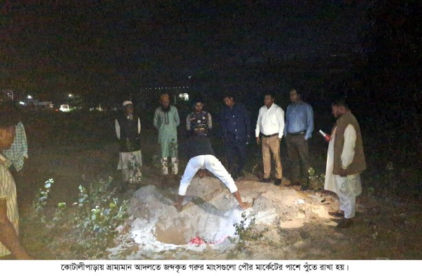 গোপালগঞ্জের কোটালীপাড়া উপজেলায় মরা গরুর মাংস বিক্রির অভিযোগে প্রায় ১০ মণ মাংস জব্দ করে মাটিতে পুঁতে ফেলা হয়েছে।